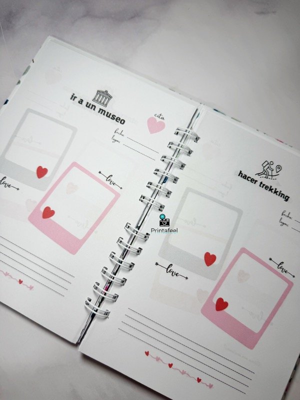 Tiene espacios para escribir y pegar fotitos o recuerdos